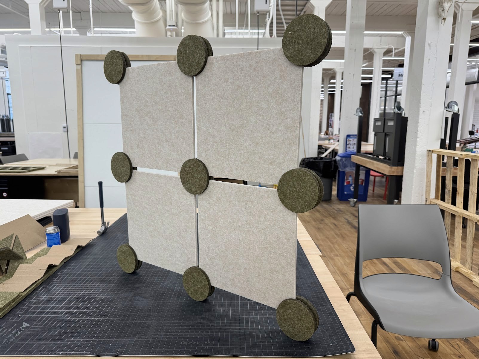 The goal was to design adaptable movable walls that function as versatile display and presentation boards for any studio need.